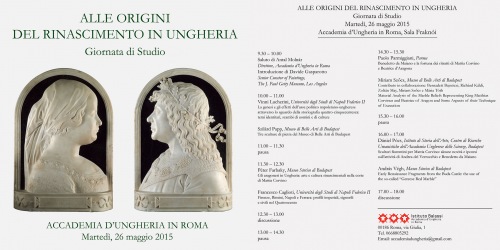 Május 26-án, kedden a magyarországi reneszánsz eredeteivel foglalkozó tanulmányi napra várják az érdeklődőket a Római Magyar Akadémián (via Giulia, 1).Részletek a mellékelt plakáton.