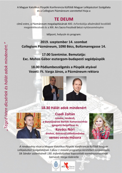 Az Ars Sacra Fesztivál további programjai a Collegium Pázmáneumban: