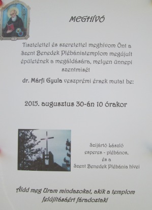 A pápai Szent Benedek-plébániatemplom megáldása augusztus 30-án, vasárnap 10 órakor érseki szentmisével veszi kezdetét. Szentmisét celebrál: Márfi Gyula veszprémi érsek