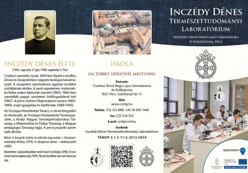A pécsi Ciszterci Rend Nagy Lajos Gimnáziuma és Kollégiuma az Öveges pályázat keretében elkészített, 227.174.834 forint támogatásból megújult Inczédy Dénesről elnevezett, természettudományos laboratórium ünnepélyes projektzáró rendezvényére hívja és várja az érdeklődőket.
