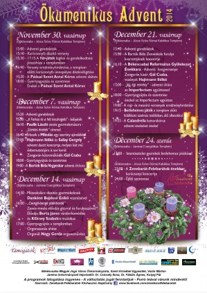 Idén is megrendezi az Ökumenikus advent programsorozatot a Zenebarát Felebarátok zenekar a békéscsaba-erzsébethelyi Jézus Szíve-plébánián: november 30-tól vasárnaponként az ünnepre hangoló programokkal várják az érdeklődőket. Az eseménysorozat szenteste, az éjféli misével zárul.