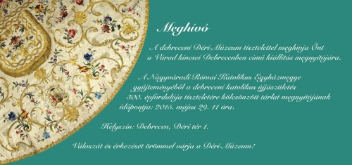 Várad kincsei Debrecenben címmel kiállítás nyílik május 29-én, pénteken 11 órakor a debreceni Déri Múzeum Zoltai termében (Debrecen, Déri tér 1.).