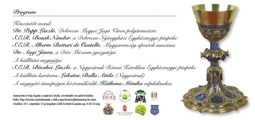 Az egyházművészet különféle szakágait reprezentáló kiállítás anyagát a Nagyváradi Római Katolikus Egyházmegye adta kölcsön a debreceni katolikus újjászületés 300. évfordulója alkalmából. Több mint hatvan rendkívül értékes műtárgy először kerül magyarországi közönség elé.