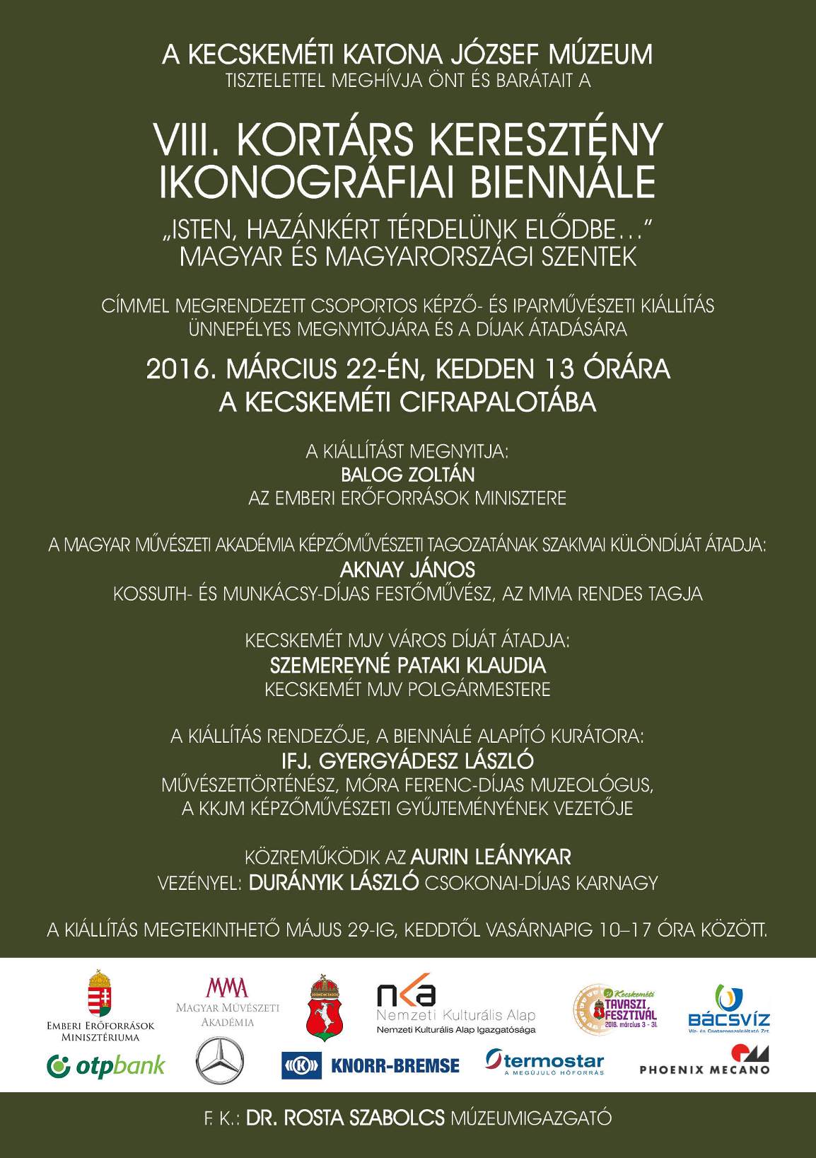 „Isten, hazánkért térdelünk elődbe…” – Magyar és magyarországi szentek – kiállítás a Kecskeméti Katona József Múzeum szervezésében a 31. Kecskeméti Tavaszi Fesztivál keretében
