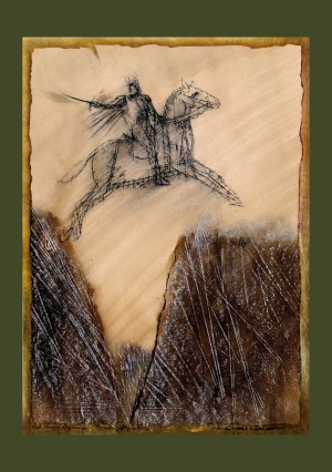 BARDÓCZ LAJOS Szent László legenda (A Tordai hasadék keletkezése), 2013, papír, pác, pitkréta, 64x46,5 cm