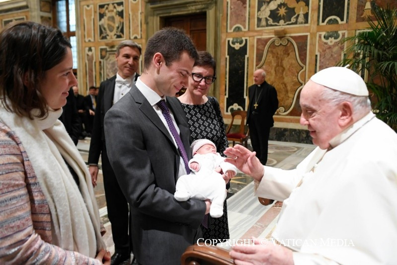 Az Egyház a házasságon alapuló családot támogatja, minden helyen és mindenkor hozzájárulva a házastársi kötelék szilárdabbá tételéhez a mindennél nagyobb szeretet által. Valójában a család ereje alapvetően abban rejlik, hogy képes szeretni és szeretni tanítani, hiszen a családban előforduló sebek is a szeretet által gyógyulnak meg – zárta beszédét Ferenc pápa.