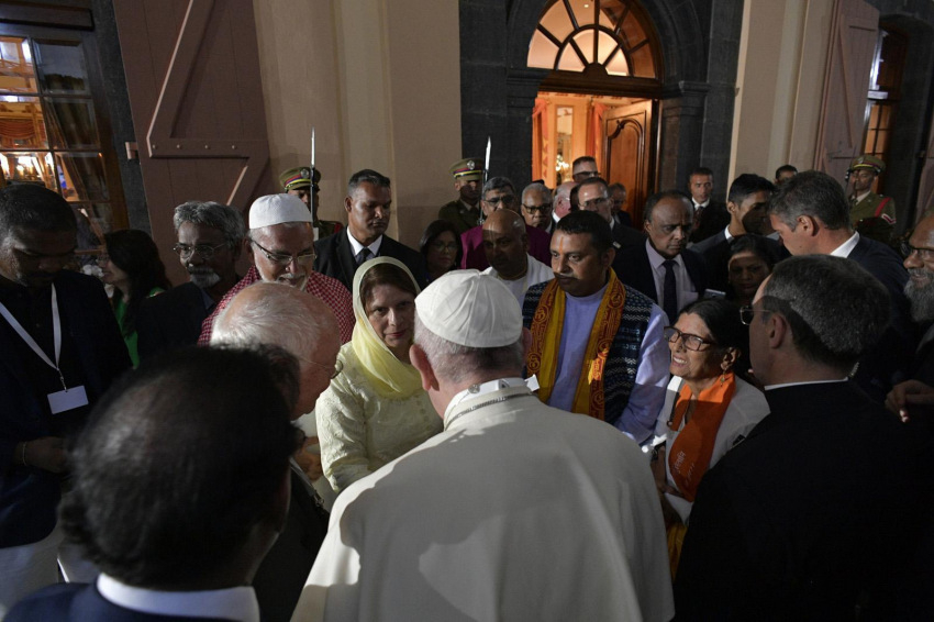 Apostoli látogatása záróeseményeként a mauritiusi állami vezetőkhöz intézett beszédében Ferenc pápa a szigetország kulturális, etnikai, vallási életének sokszínűségét emelte ki, mely képes volt harmonizálni a különbözőségeket egy közös terv szolgálatában. Mauritius minden lakójához intézve szavait a Szentatya arra emlékeztetett, hogy népük a különböző földrészekről eltérő kulturális és vallási hagyománnyal érkező bevándorlókból született, akik lassan megtanulták egymást gazdagítani a különbözőségeikkel, és az együttélés során közösen építik a közjóra figyelmes testvériséget. Példájuk azt mutatja, hogy a népek nagy családja ölén lehetséges hatékony közösséget építeni, anélkül, hogy bárkit is kirekesztenének – hangsúlyozta a pápa. Megfogalmazása szerint Mauritius népének közös a DNS-emlékezete, hiszen őrzi azokat a bevándorlási hullámokat, melyekkel a szigetre jöttek az őseik, s amelyek arra indították őket, hogy nyíljanak meg a különbözőség előtt. A Szentatya gyökereik megőrzésére buzdította a szigetállam lakóit, továbbá arra, hogy úgy fogadják be az érkezőket, ahogy egykor őseik fogadták egymást.