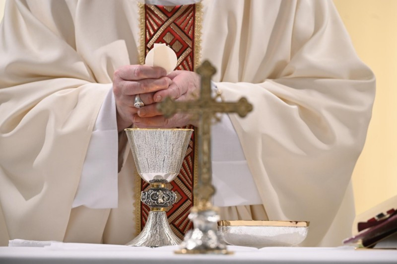 A szentmisén lelki áldozásra buzdította a híveket, majd a szertartás végén szentségimádást végzett és eucharisztikus áldást adott. A Szentlélekről elnevezett kápolna elhagyása előtt Ferenc pápa a jelenlevőkkel elénekelte a húsvéti időbere jellemző Regina Coeli Mária-antifónát.