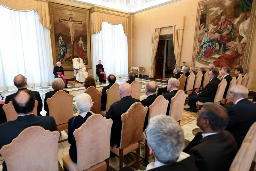 Ferenc pápa bevezetőjében köszöntötte a jubiláló intézmény képviselőit, akik három kontinens országaiból érkeztek, „mindegyikük a saját, megbecsült szakterületéről”. Ez a színesség garantálja a bizottság nemzetközi dimenzióját és multidiszciplináris jellegét, így tevékenysége egy gyümölcsöző és proaktív multikulturális dinamika része.