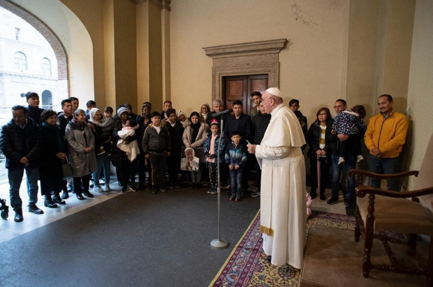 E két szimbólum – a mentőmellény és a kereszt – állt Ferenc pápa beszédének középpontjában, melyet a Leszbosz szigetéről Rómába érkezett harminchárom migránshoz intézett. Utalt egy másik mentőmellényre is, melyet néhány éve ajándékoztak neki életmentők, s amit az Átfogó Emberi Fejlődés Előmozdítása Dikasztériumának migránsokkal és menekültekkel foglalkozó szekciójának adományozott, hiszen ez a missziójuk: az Egyház elkötelezettsége a migránsok életének megmentése, majd befogadásuk, védelmük, segítésük és integrálásuk. A Szentatya igazságtalanságnak nevezte, hogy sok migráns saját földje elhagyására, a sivatagon való átkelésre, visszaélések és kínzások elviselésére kényszerül a fogvatartás során, miként igazságtalanság az is, hogy elutasítják őket és hagyják meghalni a tengeren.