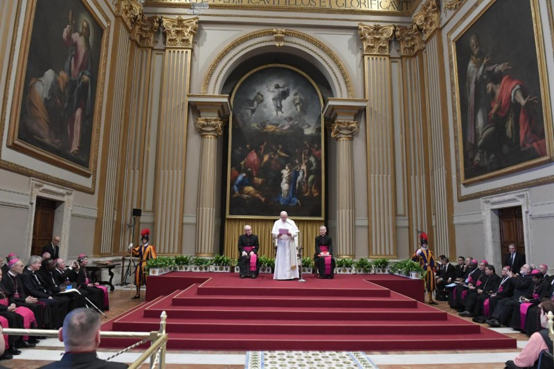 Ferenc pápa a konferencia tagjaihoz intézet beszédében leszögezte: az evangélium öröme a Jézus Krisztussal való találkozásból ered. Ha megengedjük az Istennek, hogy túl vigyen minket saját magunkon, akkor az életünk megváltozik, és elérjük saját legigazibb valónkat.