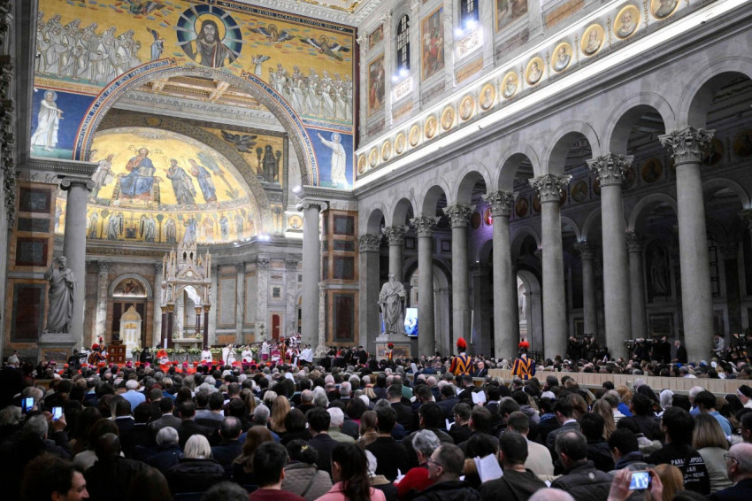 Hálás vagyok az Ökumenikus Patriarchátust képviselő Polikárp metropolitának, az anglikán közösséget képviselő Ian Ernest érseknek, aki befejezi értékes szolgálatát, amelyért nagyon hálás vagyok – minden jót kívánok neki, amikor visszatér hazájába –, valamint a többi egyház képviselőinek, akik részt vesznek ezen az esti dicsőítő áldozaton. Fontos, hogy együtt imádkozzunk, és jelenlétetek ma este örömforrás mindannyiunk számára. Üdvözlöm továbbá a Keresztények Egységéért Felelős Dikasztérium Ortodox és Keleti Ortodox Egyházakkal való Kulturális Együttműködésért felelős Bizottsága által támogatott diákokat, az Egyházak Világtanácsa Bossey Ökumenikus Intézete tanulmányútjának résztvevőit, valamint a sok más ökumenikus csoportot és zarándokot, akik erre a szertatásra érkeztek Rómába. Köszönetet mondok a kórusnak, amely igen gyönyörű környezetet biztosít számunkra az imádsághoz. Kívánom, hogy Szent Pálhoz hasonlóan mindannyian megtaláljuk reménységünket Isten megtestesült Fiában, és felajánljuk azt másoknak mindenütt, ahol elfogyott a remény, ahol életeket oltottak ki, vagy ahol viszontagságok törték össze a szíveket (vö. Homília a karácsonyi éjjeli misén, 2024. december 24-én).