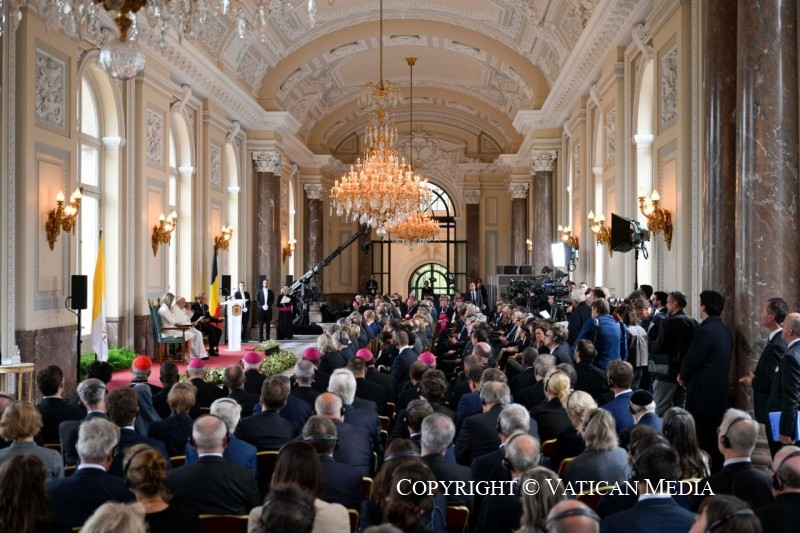 Belgium egyszerre apró és nagy ország, nyugati és központi, mely egy nagy szervezet lüktető szíve – ezzel a hasonlattal élt a pápa első hivatalos beszédében, amelyet Belgiumban mondott 46. külföldi apostoli útja során. Mintegy háromszáz ember előtt beszélt a belga királyi rezidencián, politikai és egyházi elöljáróknak, vállalkozóknak, a civil társadalom és a kulturális élet képviselőinek.