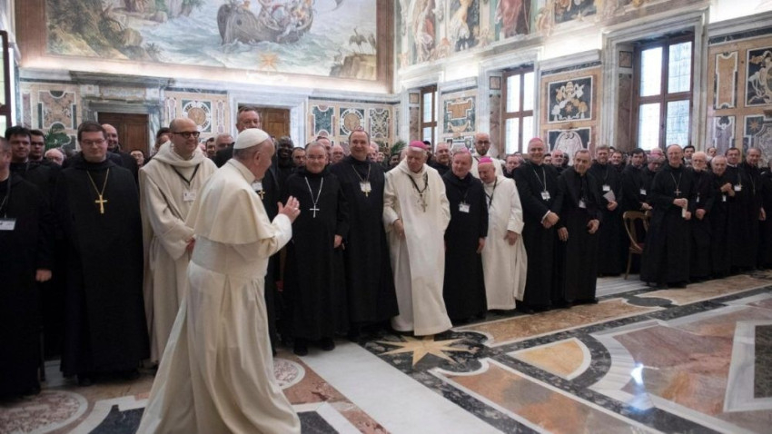 A húsvéti liturgikus időnek, melyben éppen vagyunk, vannak olyan jellegzetességei – mint például az örömhír meghirdetése és a meglepődés, a kiváltott válaszadás és az Isten ajándékainak befogadására kész szív –, amelyek valójában a mindennapi bencés élet részét képezik. Szent Benedek azt kéri Regulájában tőletek, hogy „semmit se helyezzetek Krisztus elé” (72. pont), hogy mindig éberek legyetek, a mában, készen arra, hogy hallgassátok és tanulékonyan kövessétek őt (vö. uott, Előszó). Szeretetetek a liturgia mint alapvető „opus Dei” iránt a monasztikus életben lényegi fontosságú mindenekelőtt magatoknak, mert lehetővé teszi számotokra, hogy az Úr élő jelenlétében álljatok, és értékes kincs az egész Egyház számára is, mely a századok folyamán öntöző és megtermékenyítő forrásvízként használhatta, hiszen az állandóan táplálta a hívek azon képességét, hogy mind egyénileg, mind közösségileg megéljék a feltámadt Úrral való találkozást.