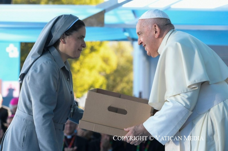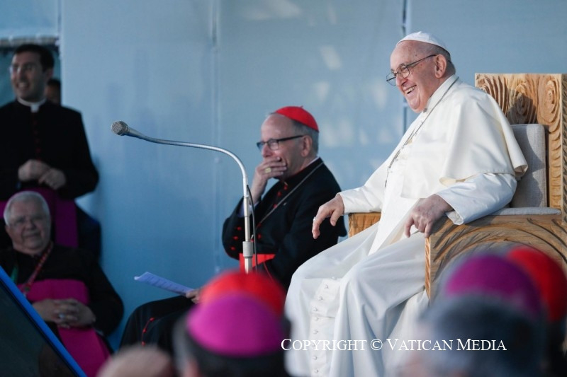 Ma este is kérdéseket tettetek fel nekem, sok kérdést. Soha ne fáradjatok bele a kérdésekbe! A kérdésfeltevés helyes, sőt gyakran jobb, mint választ adni, mert azok, akik kérdeznek, „nyugtalanok” maradnak, és a nyugtalanság a legjobb orvosság a megszokottra, arra a lapos normalitásra, amely érzésteleníti a lelket. Belül mindannyiunknak megvannak a maga aggályai, gondjai. Vigyük magunkkal ezeket a gondokat, és osszuk meg az egymással folytatott párbeszédben, vigyük magunkkal, amikor imádkozunk Isten előtt. Ahogy az élet halad előre, ezek a kérdések megválaszolásra kerülnek, csak várnunk kell rájuk. Van itt valami nagyon érdekes: