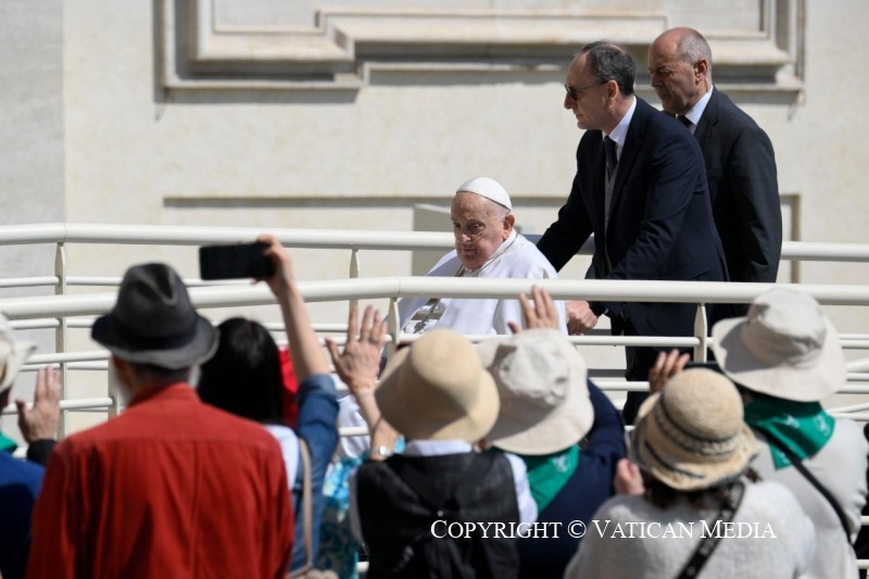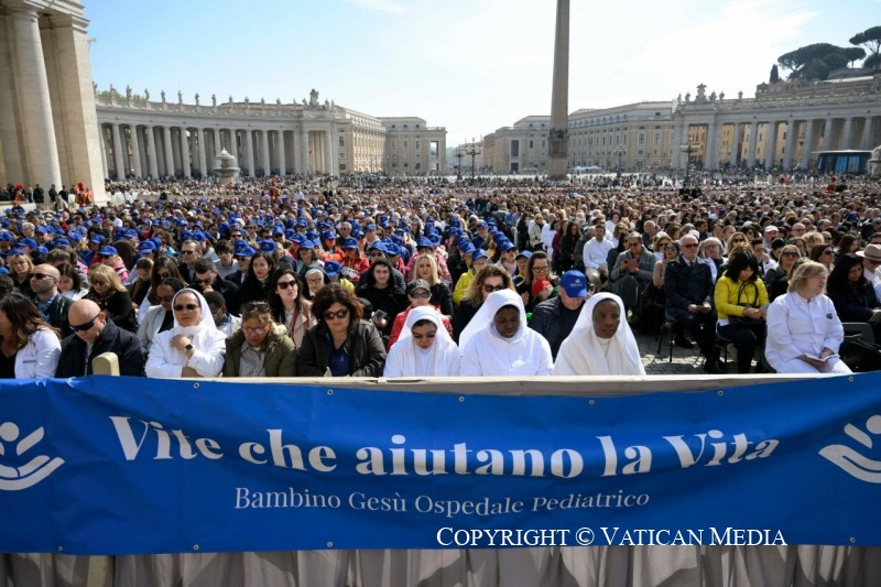 Kedves orvosok, ápolónők, ápolók, egészségügyi dolgozók, miközben betegeitekről gondoskodtok, különösen a legelesettebbekről, az Úr felkínálja nektek annak lehetőségét, hogy folyamatosan megújítsátok életeteket, hálával, irgalommal, reménnyel táplálva azt (vö. Spes non confundit bulla, 11).