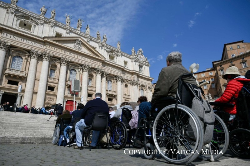 Azután veletek, kedves beteg fivéreim és nővéreim, sok mindenben osztozom életemnek ebben a szakaszában: a betegség megtapasztalásában, abban, hogy gyengének érezzük magunkat, hogy sok mindenben másoktól függünk, hogy támogatásra van szükségünk. Ez nem mindig könnyű, de olyan iskola, amelyben nap mint nap tanulunk szeretni és engedni, hogy szeressenek, követelőzés és elutasítás nélkül, sajnálkozás és kétségbeesés nélkül, hálásan Istennek és testvéreinknek a kapott jóért, ráhagyatkozva arra és bízva abban, aminek még jönnie kell.
