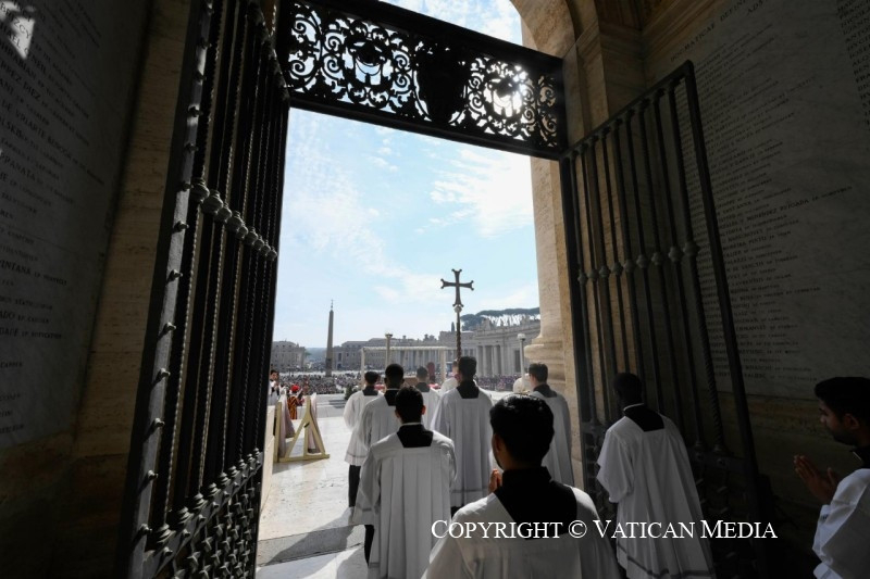 A Szentatya mielőtt üdvözölte volna a téren egybegyűlt zarándokokat és hívőket, a Szent Péter-bazilikában részesült a kiengesztelődés szentségében, imádkozott, és áthaladt a szent kapun.