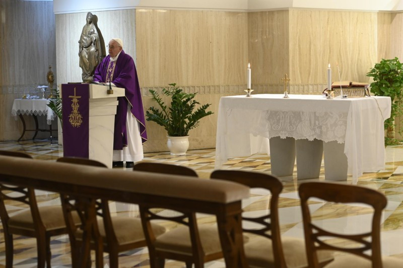 Ezekben a napokban sok a szenvedés és a félelem. Félnek az idősek, akik magányosan élnek az idősotthonokban, a kórházakban vagy otthonukban, és nem tudják, mi fog történni. Félnek azok, akiknek nincs biztos munkahelyük, és azon gondolkodnak, miként tartják el gyermekeiket; félnek, hogy nem tudnak enni adni nekik. Félnek a közalkalmazottak, hogy esetleg megbetegednek, mert ők továbbra is a munkahelyükön dolgoznak, hogy a társadalom tovább működjön. Aztán ott van mindannyiunk félelme. Imádkozzunk az Úrhoz, hogy segítsen nekünk bízni, és elviselni, legyőzni ezeket a félelmeket – buzdított Ferenc pápa a szentmise elején.
