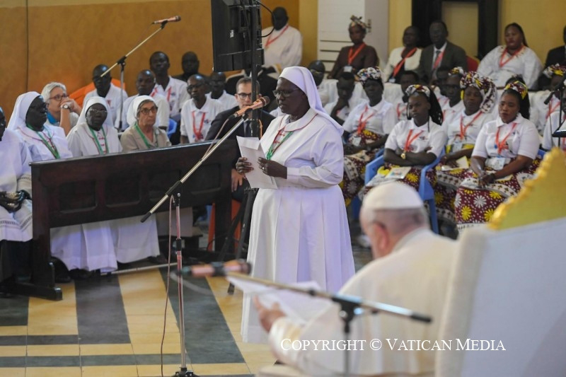 Nagyon sok pap, szerzetes vált erőszak és merénylet áldozatává – ahogyan Regina nővér mondta nővértársairól. Életüket áldozták az evangélium ügyéért, és a testvéreikhez való közelségük csodálatos tanúságtétel, amelyet ránk hagynak, és amely arra hív, hogy folytassuk útjukat. Emlékezhetünk Szent Daniele Combonira, aki misszionárius testvéreivel nagy evangelizációs munkát végzett ezen a földön: ő azt mondta, hogy a misszionáriusnak késznek kell lennie mindent megtenni Krisztusért és az evangéliumért, és hogy olyan bátor és nagylelkű emberekre van szükség, akik képesek szenvedni és meghalni Afrikáért.