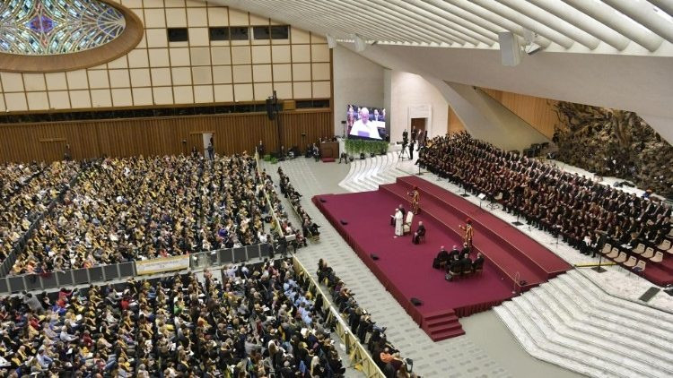 Bár különböző nyelveket beszélünk, mindenki megérti a zenét, amelyet megszólaltatunk, a hitet, amit vallunk és a reményt, ami vár minket – folytatta beszédét Ferenc pápa. Arra szólította a fiatalokat, hogy ne essenek a szereplési vágy kísértésébe, hanem alázattal szolgálják a liturgiát és a közösséget. Ne becsüljék le a népi vallásosság többi kifejeződését: a védőszentek ünnepeit, a búcsúkat, a körmeneteket, a néptáncot és a népdalokat, mert azok ugyanúgy a Szentlélek működésének nyomai az Egyház szívében. A zene legyen tehát az egység eszköze, mely hatékonyabbá teszi az evangéliumot a mai világban. A szépség által magához vonz, és segít hinni, rábízva magunkat az Atya szeretetére. Ferenc pápa végül Szent Cecília, a zene védőszentje oltalmába ajánlotta a III. Nemzetközi Kórustalálkozó résztvevőit, és áldását adta rájuk.