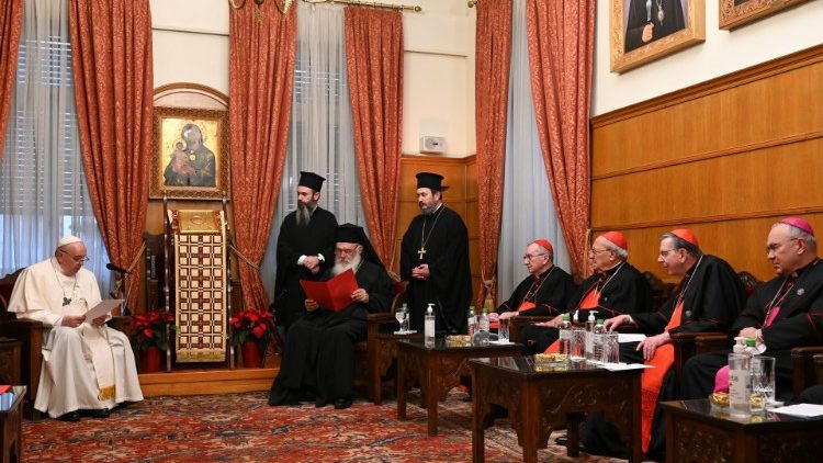 Az ortodox érsek végül nagyrabecsülését fejezte ki Ferenc pápának, aki „nem azért jött, hogy szolgáljanak neki, hanem hogy ő szolgáljon…” (Mk 10,45).
