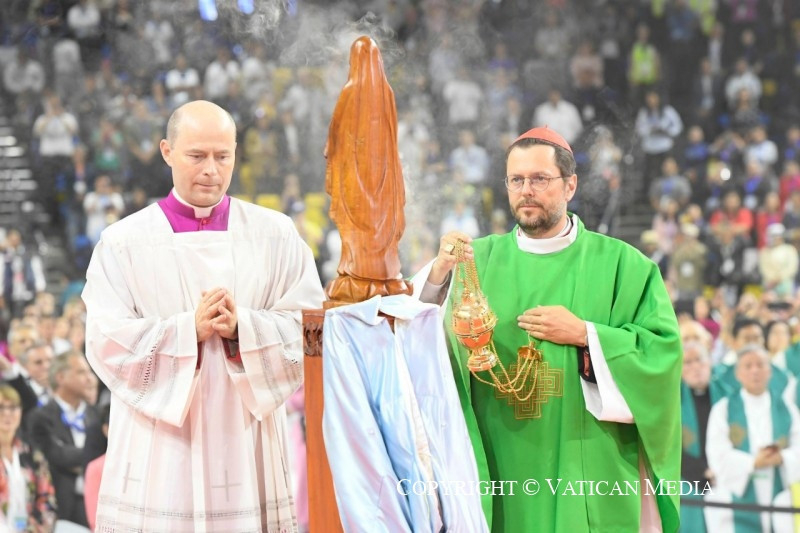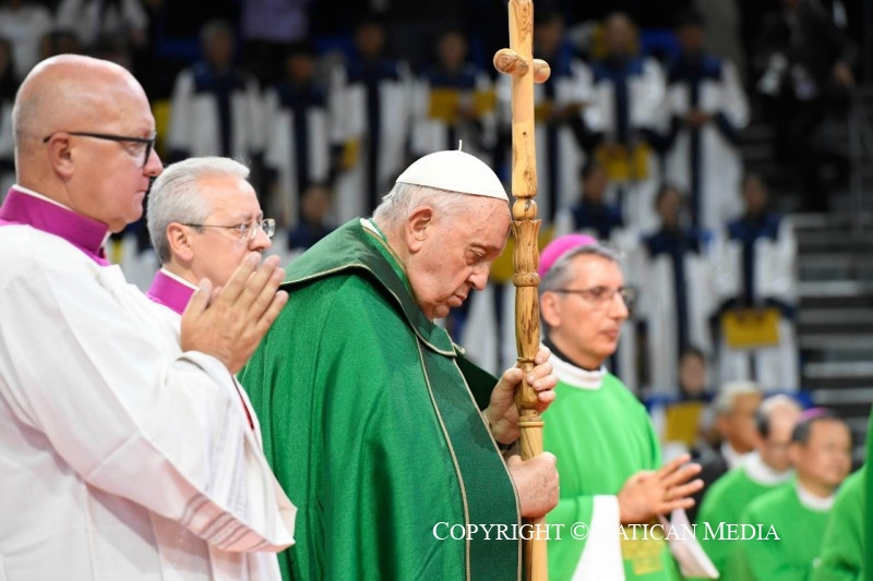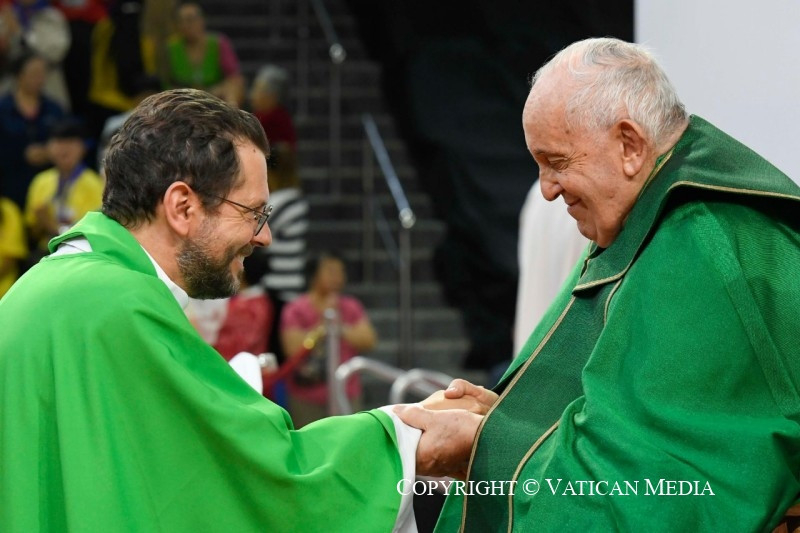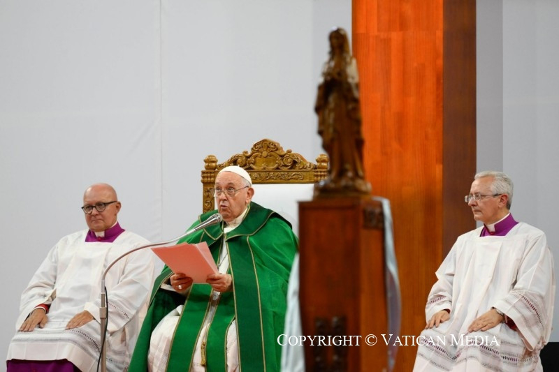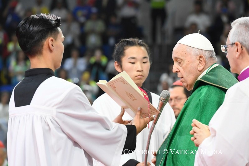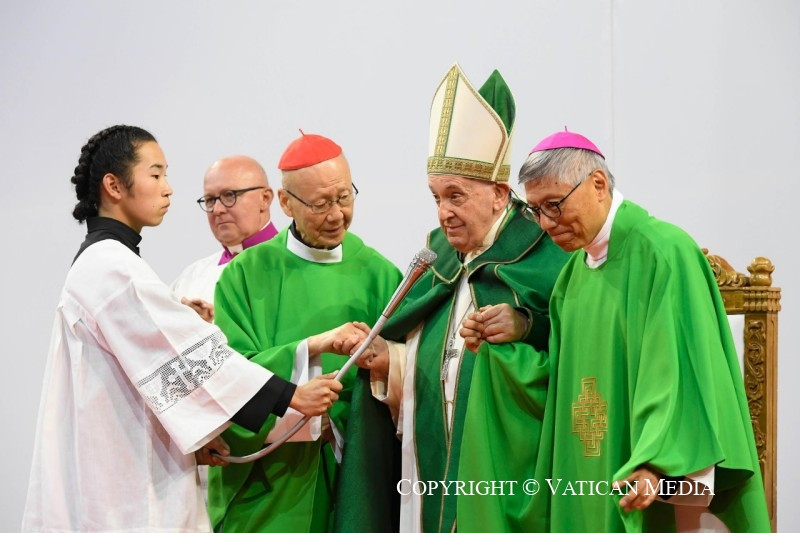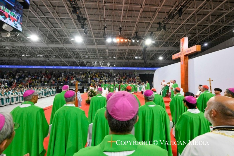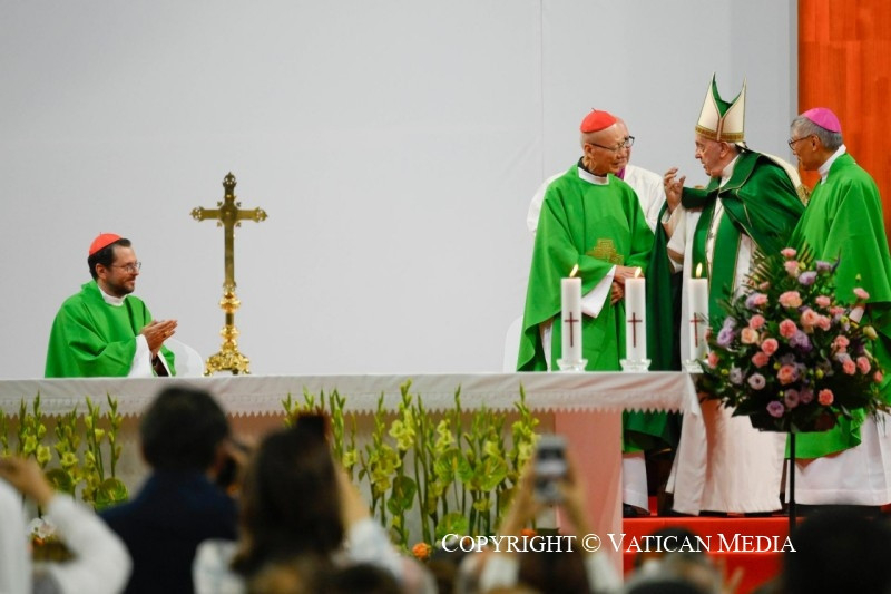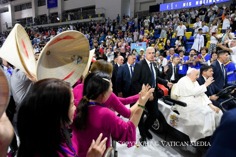 Köszöntöm püspöktestvéreimet, a papokat, a megszentelt férfiakat és nőket, és a különböző országokból érkezett minden barátot, különösen azokat, akik a hatalmas ázsiai földrész különböző vidékeiről érkeztek – megtiszteltetés számomra, hogy itt lehetek –, és akiket nagy szeretettel ölelek. Szeretném különösen nagy hálámat kifejezni mindazoknak, akik segítik a helyi egyházat, akik lelkileg és anyagilag támogatják. Ezekben a napokban minden eseményen jelentős kormányzati küldöttségek voltak jelen: köszönöm az elnök úrnak és a hatóságoknak a szívélyes fogadtatást és az előkészületeket. Kézzelfoghatóan megtapasztalhattam a hagyományos szívélyességet: köszönöm!