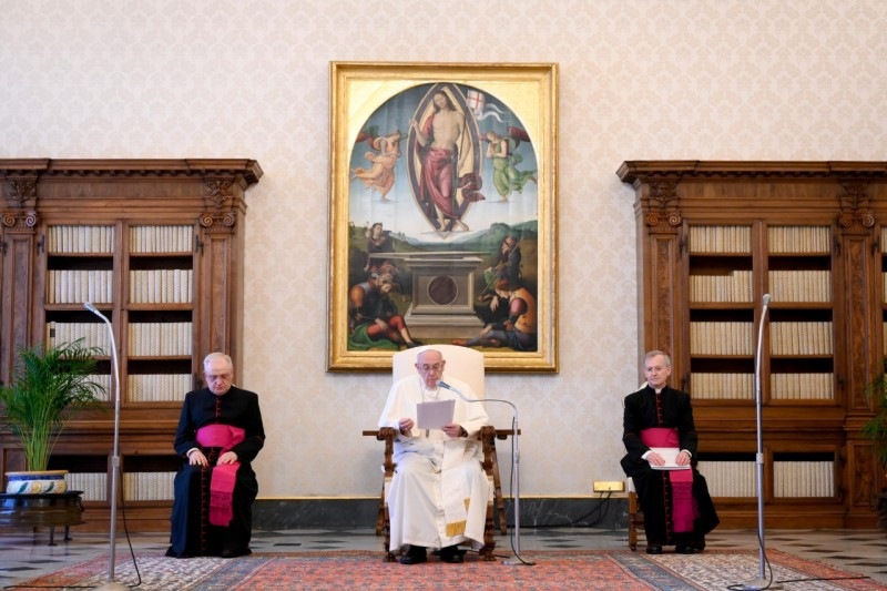 A Biblia első oldalain az imádkozó emberek mind békéért dolgozó emberek: az ima ugyanis, amikor hiteles, mentes az erőszakos ösztönöktől, és nem más, mint Isten felé fordított tekintet, hogy ismét ő vigyázzon az ember szívére. A katekizmusban ezt olvassuk: „Ilyen minőségű imát igaz emberek egész sokasága él meg minden vallásban” (KEK 2569). Az ima az újjászületés virágágyait gondozza olyan helyeken, ahol az ember gyűlölete csak a sivatagot volt képes növelni. Az ima hatalmas erejű, mert vonzza Isten hatalmát, és Isten hatalma mindig életet ad: mindig. Ő az élet Istene, és újjászületést ad nekünk!
