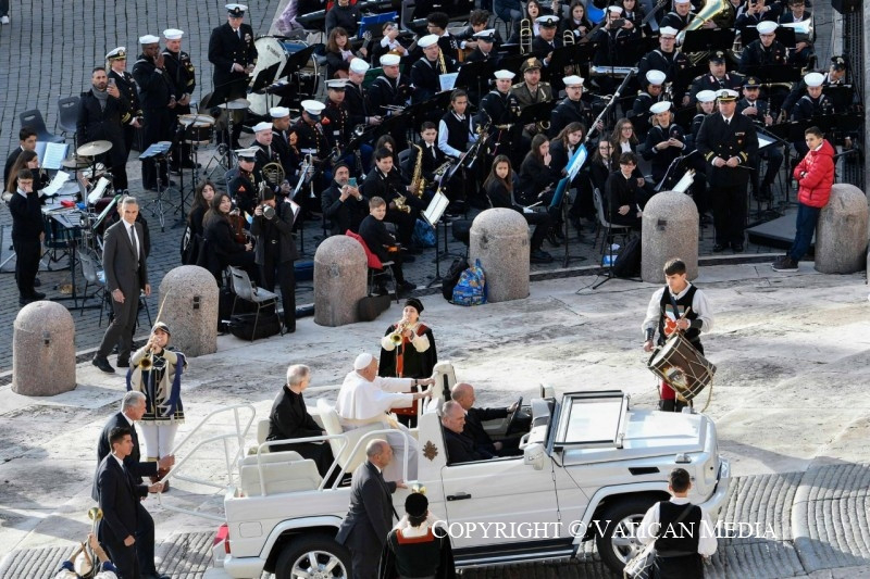 Mert különben elveszíti valóban katolikus jellegét, vagyis azt, hogy mindenkinek szól, egyetemes: nem első osztályú kiválasztottak kicsiny csoportja. Ne felejtsük el: Isten azért választ ki egyeseket, hogy mindenkit szeressen. Meg kell őriznünk az egyetemesség horizontját! Az evangélium nemcsak nekem, hanem mindenkinek szól! Ezt ne felejtsük el! Köszönöm!