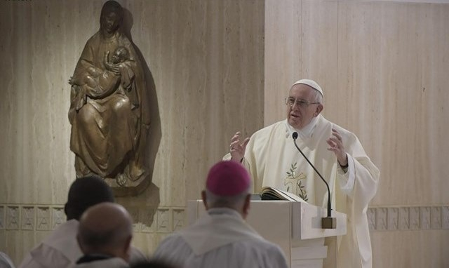 Hasznos lesz számunkra ma a mise során – említette a pápa –, hogy itt az oltáron Krisztus papsága csodájának eleven emlékezetét végezzük, mert Ő jelen lesz itt papsága első csodájával, amikor életét adja értünk. De itt van papsága második csodájának élő emlékezete, mert ő imádkozik itt, ebben a szentmisében, a Miatyánk után, és végül a harmadik mozzanat, amikor visszatér, ez a mi dicsőségünknek a reménye. Kérjük az Úrtól a kegyelmet, hogy a szívünk ne záruljon be soha e nagy csoda, ajándék előtt” – fejezte be homíliáját Ferenc pápa a Szent Márta-ház kápolnájában tartott hétfői szentmisén.