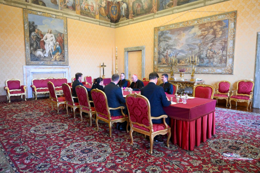 A magánkihallgatást követően a köztársasági elnök bemutatta a Szentatyának a kíséretét, majd sor került az ajándékok átadására. A magyar delegáció tagja volt többek között Habsburg-Lotharingiai Eduárd, Magyarország szentszéki nagykövete és Németh Norbert, a Pápai Magyar Intézet rektora.