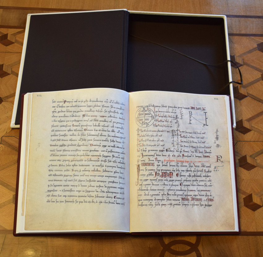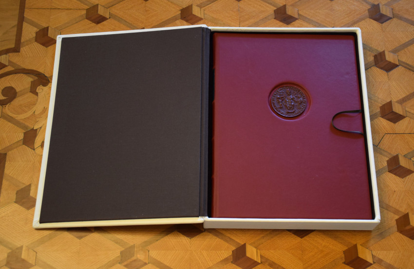 Az emlékérme mellett a Főapátság a legrégebbi magyarországi chartularium (oklevélmásolati-könyv) fakszimile, azaz az eredetivel mindenben egyező másolat díszkiadását ajándékozta Ferenc pápának egy különleges fehér bőrdobozban. Az 1200-as évekből származó Liber Rubernek nevezett kötet a pannonhalmi monostor 11-12. századi okleveleinek hiteles másolatát őrzi. Ezek között számos olyan pápai bulla is megtalálható, amelyek bizonyítják Szent Márton monostora és a Szentszék évezredes kapcsolatát. Az MNB továbbá a 100 éves fennállására készített ezüst emlékérmével, és a Nemzeti Bankot bemutató albummal lepte meg Ferenc pápát.