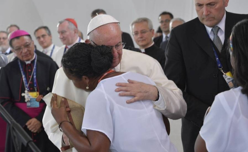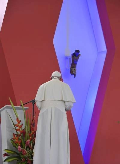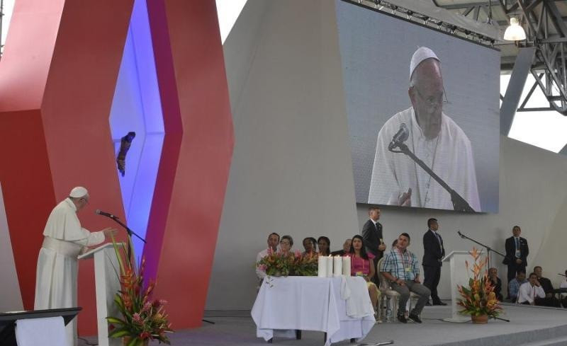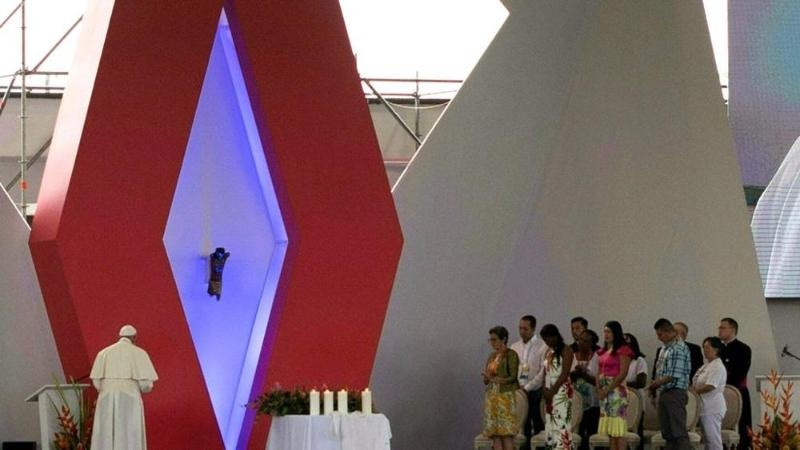Bojayá feszületének lábánál gyűltünk egybe, amely 2002. május 2-án jelen volt és maga is megsérült, amikor több tucatnyi embert mészároltak le, akik a templomban kerestek menedéket. Ennek a képnek erős szimbolikus és spirituális értéke van. Amikor rá tekintünk, nemcsak azt szemléljük, ami azon a napon történt, hanem a sok fájdalmat, a sok halált, a Kolumbiában az utóbbi évtizedekben kerékbe tört sok életet és a sok kiontott vért. Az, hogy most így, megcsonkítva és sérülten látjuk Krisztust, kérdőre von minket. Nincs többé karja, a teste csonka, de megőrizte arcát, s azzal néz és szeret minket. Ez a széttört és amputált Krisztus számunkra még „több Krisztus”, mert újból megmutatja, hogy azért jött, hogy népéért és népével együtt szenvedjen; és annak megtanítására is, hogy nem a gyűlöleté az utolsó szó, hogy a szeretet erősebb a halálnál és az erőszaknál. Megtanítja, hogy átalakítsuk a fájdalmat az élet és a feltámadás forrásává, hogy vele együtt megismerjük a megbocsátás erejét és a szeretet nagyágát.