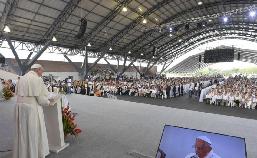 Végezetül mint testvér és mint atya szeretném azt mondani: Kolumbia mint Isten népe, nyisd ki szívedet és engesztelődj ki! Ne félj se az igazságtól, se az igazságosságtól! Kedves kolumbiaiak, nem féljetek bocsánatot kérni és megbocsátani! Ne álljatok ellen a megbékélésnek, amely közel hoz titeket egymáshoz, segít, hogy újból rátaláljatok egymásra mint testvérre, és felülemelkedjetek az ellenségeskedésen! Itt az idő, hogy begyógyítsátok a sebeket, hidakat építsetek, elhárítsátok a különbözőségből fakadó akadályokat! Itt az idő, hogy eloltsátok a gyűlölet tüzét, hogy lemondjatok a bosszúállásról, hogy megnyíljatok az igazságosságon, az igazságon és a testvéri találkozás igazi kultúrájának megteremtésén alapuló együttélésre! Hogy összhangban és testvériesen tudjunk együtt lakni, ahogyan az Úr akarja! Kérjük tőle, hogy a béke eszközei lehessünk, hogy ahol gyűlölet és neheztelés honol, oda mi szeretetet és irgalmat tudjunk vinni (vö. Assisi Szent Ferencnek tulajdonított ima).