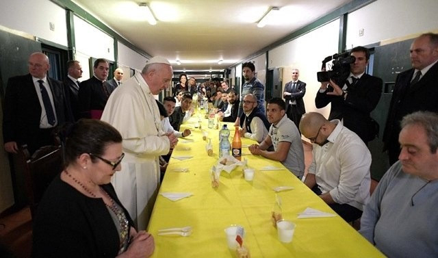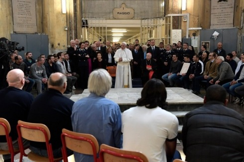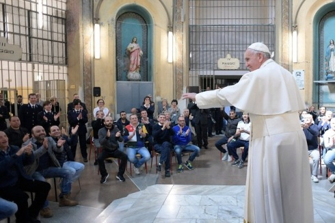 Ferenc pápa rövid, de mély és erőteljes beszédet intézett a rabokhoz, akik megrendülten hallgatták szavait: „Jézus azt mondta: börtönben voltam, és meglátogattatok. Számomra ti, testvéreim, Jézus vagytok. Nekem nincs bátorságom azt mondani valakinek, aki börtönben van, hogy megérdemelte. Miért ti, és miért nem én? Az Úr úgy szeret engem, ahogyan benneteket, ugyanaz a Jézus van bennetek, mint bennem, bűnös testvérek vagyunk.”