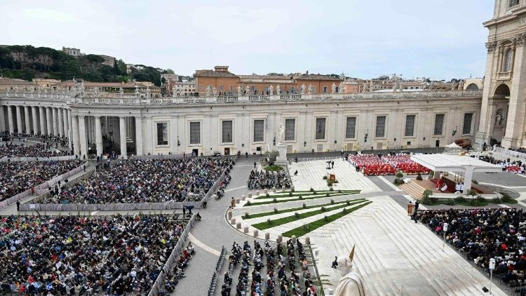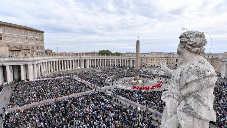 Ma, virágvasárnap az evangéliumban az Úr kínszenvedésének történetét hallottuk Lukács evangélista megfogalmazásában (vö. Lk 22,14–23,56). Hallottuk, hogy Jézus többször is az Atyához fordul: „Atyám, ha akarod, vedd el tőlem ezt a kelyhet. De ne az én akaratom teljesüljön, hanem a tied” (Lk 22,42); „Atyám, bocsáss meg nekik, mert nem tudják, mit tesznek” (Lk 23,34); „Atyám, kezedbe ajánlom lelkemet” (Lk 23,46). Láttuk, hogy védtelenül és megalázva megy a kereszt felé, egy apja nyakába kapaszkodó kisgyermek érzéseivel és szívével, testileg gyöngén, de a bizalomteljes ráhagyatkozásban erősen, míg el nem alszik, halálában, Atyja karjában.