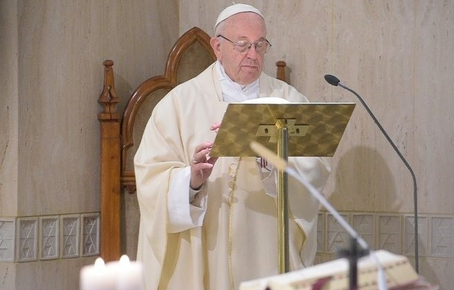 Menjünk a Szűzanyához, ő megvéd minket. Az egyházatyák, és főként az orosz misztikusok arra buzdítanak, hogy a lelki viharok idején keressünk oltalmat Isten Anyjának nagy köpenye alatt. Menjünk Anyánkhoz. Ő segítsen minket ebben a harcban a vesztes, leláncolt kutyával szemben, hogy legyőzzük – fohászkodott a kedd reggeli szentmise végén Ferenc pápa.