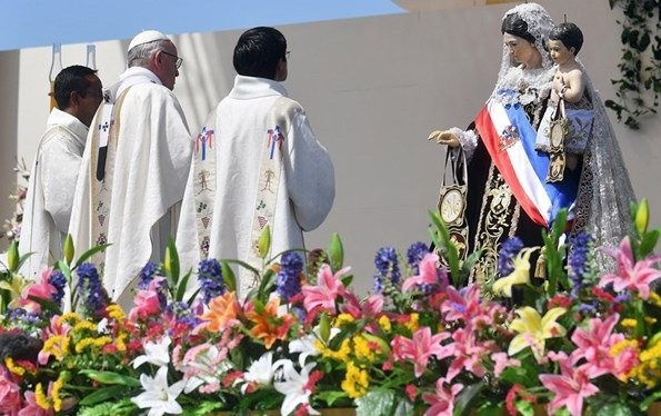 Január 18-án, csütörtökön az intézmény rektora és két pap fogadta Ferenc pápát; bekísérték a templomba, ahol a Szentatya elhelyezett egy virágcsokrot, amelyet három kisgyermek nyújtott át neki korábban. A templomban tíz beteg is jelen volt, továbbá egy, az 1970-es évek rezsimjének áldozatait képviselő személy, aki egy levelet adott át a pápának.