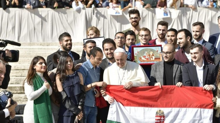 Magyarországon tanuló, hazájukból elüldözött keresztény fiatalokkal találkozott október 10-én, a szerdai általános kihallgatás keretében Ferenc pápa a vatikáni Szent Péter téren.