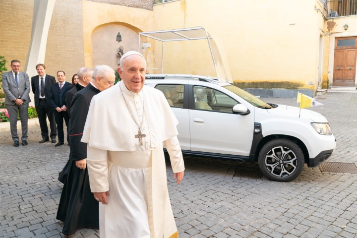 Miután március 25-én közzétették Ferenc pápa romániai látogatásának végleges hivatalos programját, Jászvásár (Iaşi) polgármestere közölte a sajtóval, hogy a Dacia már dolgozik azon a két pápamobilon, amelyeket Ferenc pápa fog használni Romániában. Azok a személygépkocsik, amelyekkel a Szentatya közlekedett, egyedi, SCV-1-es rendszámot kaptak egy sürgősségi kormányrendeletnek köszönhetően.