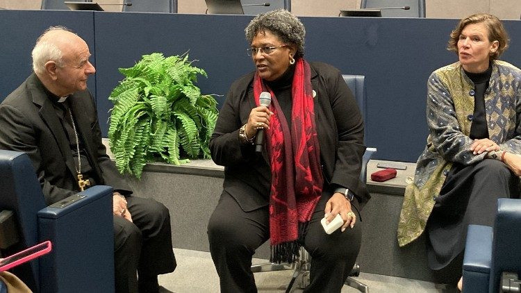 Ezt követően Mariana Mazzucato, a londoni University College innovációs- és közérték-gazdaságtani professzora, a Pápai Életvédő Akadémia tagja folytatott párbeszédet Mia Mottley barbadosi miniszterelnökkel. A beszélgetésben azt járták körül, hogy a közjó új gazdasági felfogása hogyan segíthet sürgős, jól megtervezett fellépést teremteni gazdasági és társadalmi problémáink megoldásában, amelyek az egészségüggyel, a környezettel – beleértve a biodiverzitást is –, az éghajlattal és a vízzel, valamint a mesterséges intelligencia jövőjével kapcsolatosak.