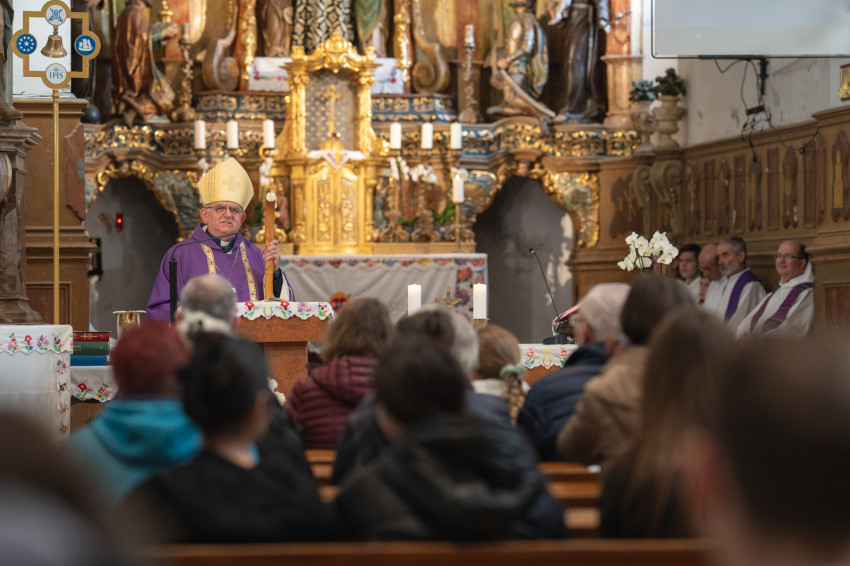 Ekkor a legfontosabb lépést kell megtennünk. Ez érvényes arra is, amikor a szeretteinktől kell elválnunk. Nem mindegy, hogy mi történik akkor, amikor végigszenvedjük mellettük a haláltusát. Kétségbe esünk, vádoljuk az Istent, sajnáljuk magunkat, rettegünk, vagy ugyanazt tesszük, amit magunkkal tettünk mindennap: a szeretteinket is átadjuk egy nálunk sokkal nagyobb szeretetnek, a Jóisten szeretetének. Mások a gyümölcsei, ha ezt gyakorolva abban a kritikus pillanatban, amikor beköszön a haláltestvér, meg tudjuk lépni” – fogalmazott a megyéspüspök, majd hangsúlyozta: amikor Jézus ki tudta mondani, hogy „ne az én akaratom legyen meg, hanem a tiéd”, akkor béke lett. S ezzel a békével oda tudott lépni az őt elfogni készülő katonákhoz.