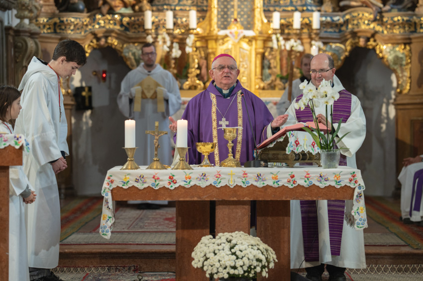 „Ne féljetek! Szeressetek! Reméljetek! – foglalta össze halottak napja üzenetét a főpásztor prédikációja elején. – Valamennyiünkben ott van a haláltól való félelem, ami teljesen természetes. Nagyon hálás vagyok az evangélistáknak azért, hogy megörökítették Jézus halálfélelmét. »Példát adtam nektek« – mondja Jézus, aki mindenben példát adott, nemcsak a szeretetben, hanem a bűn elleni harcban is, valamint abban, miként kell a legnagyobb félelemmel megküzdeni. Gyötrődött és félt a haláltól, könyörgött a mennyei Atyának, hogy »ha lehetséges, ne kelljen kiinnom ezt a kelyhet«. De tudjuk, hogy fenékig ki kellett ürítenie azt.