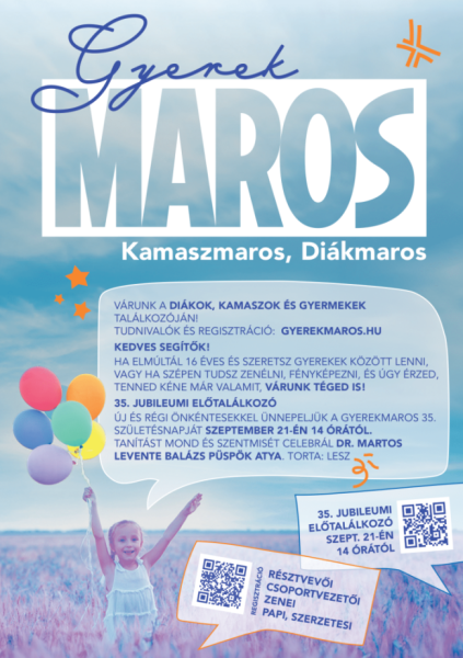 Új és régi önkéntesekkel ünneplik a Gyerekmaros 35. születésnapját szeptember 21-én 14 órától. Tanítást mond és szentmisét celebrál Martos Levente Balázs püspök.