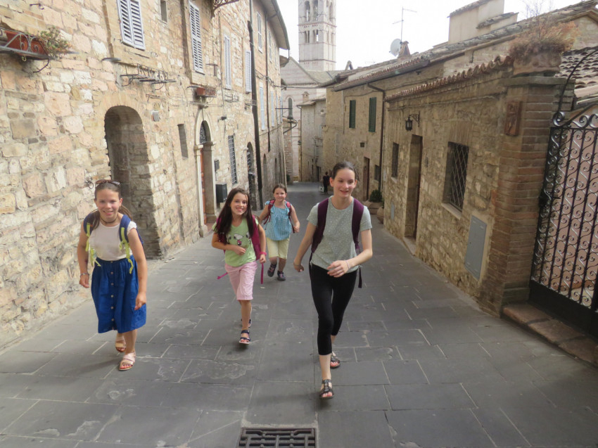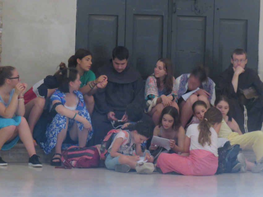 Zsófi (12 éves) arra emlékezik szívesen, hogy a „csibék” sok esetben egyszerűen csak a járókelőknek énekeltek. Eszébe jut, hogy Assisi keskeny, hangulatos utcácskáin át, kőházak között, szökőkutas tereken keresztül haladva eljutottak a kicsiny Szent István kápolnába (San Stefano) is, ahol énekelve imádkoztak.