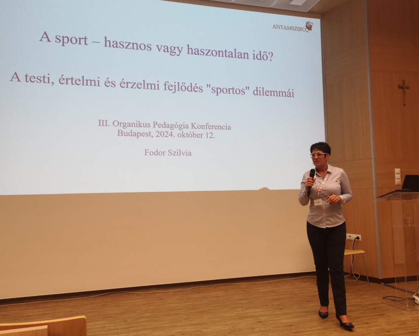 Fodor Szilvia előadása elején a mozgás testi, szellemi fejlődésre, érzelmekre, társas kapcsolatokra gyakorolt fejlesztő hatásairól beszélt. E hatások akkor aktiválódnak, ha a sporthoz öröm kapcsolódik.