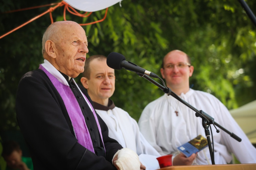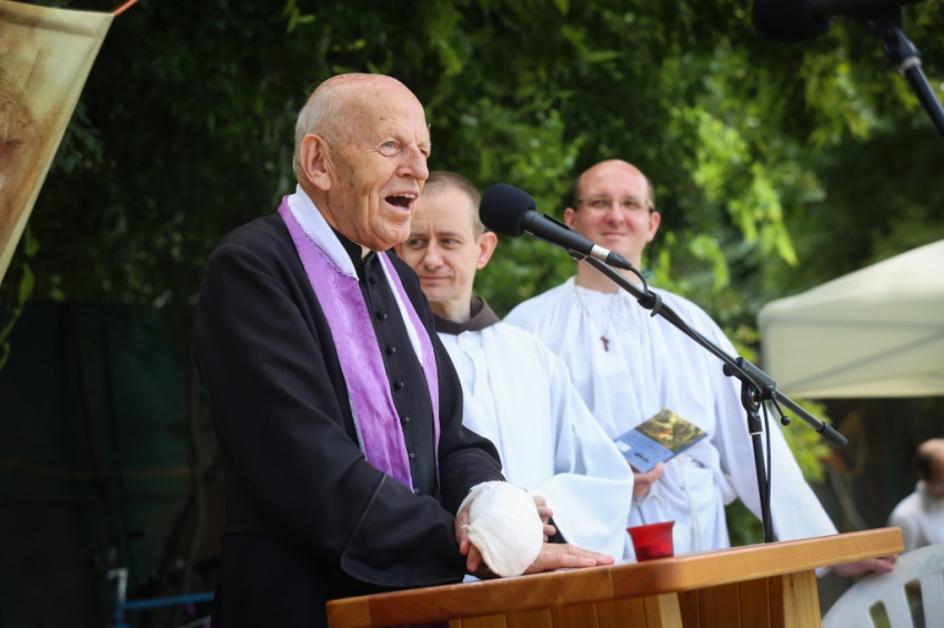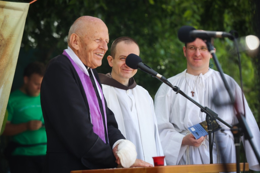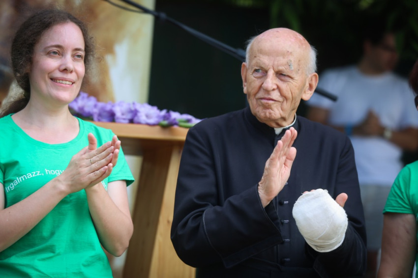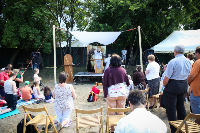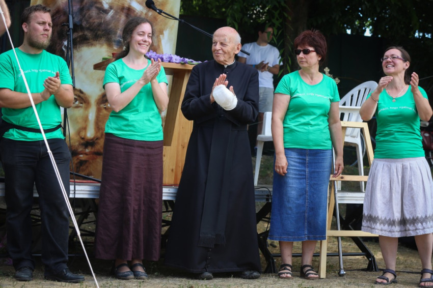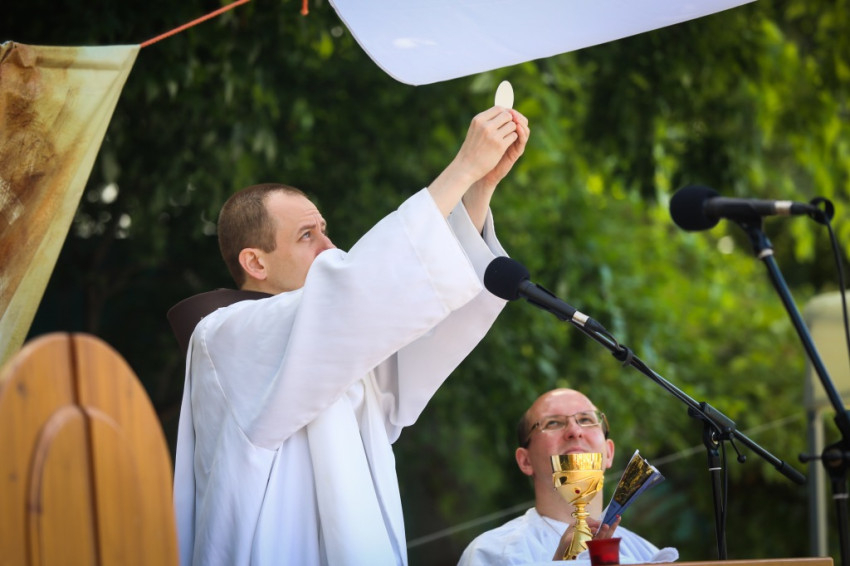 Vasárnap a szentmise kezdetén Dobszay Benedek egy, a homíliában később kibontott anekdotát mesélt a hallgatóságnak, melyben egy szerzetes mondta egyszer túlbuzgó rendtársának: „Hidd el, a Szentlélek nem csak ott működik, ahol te szuszogsz”.