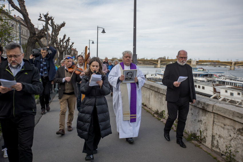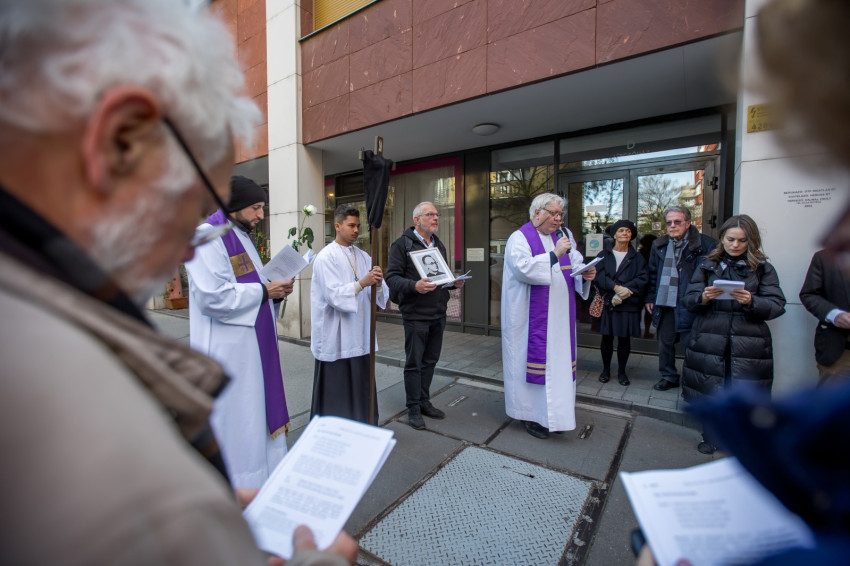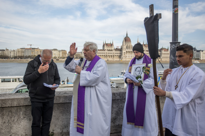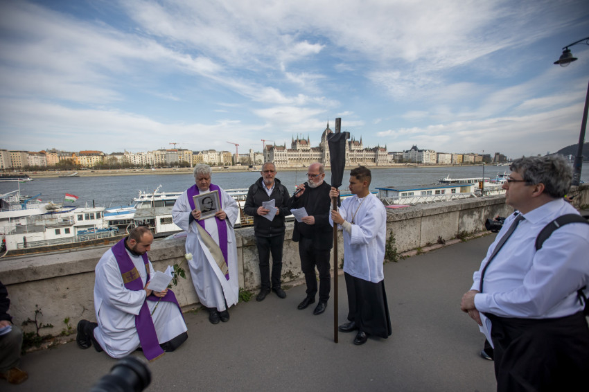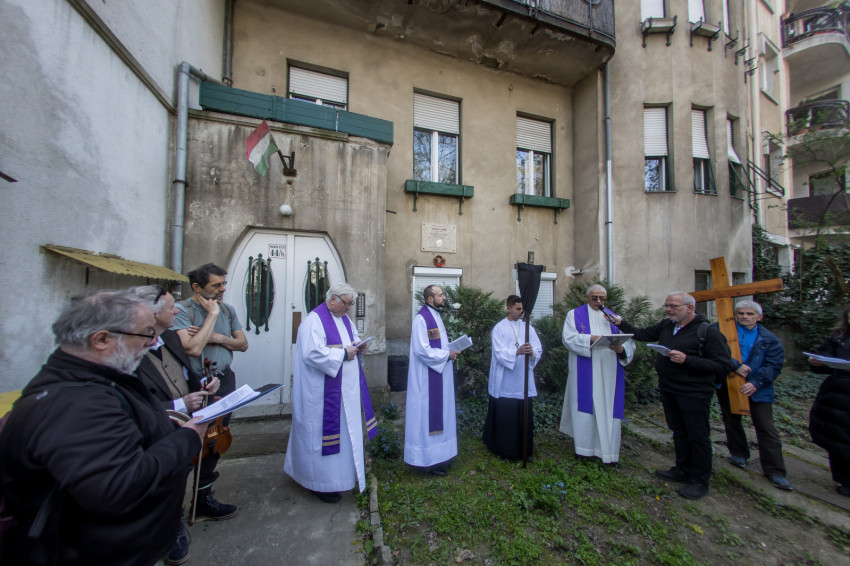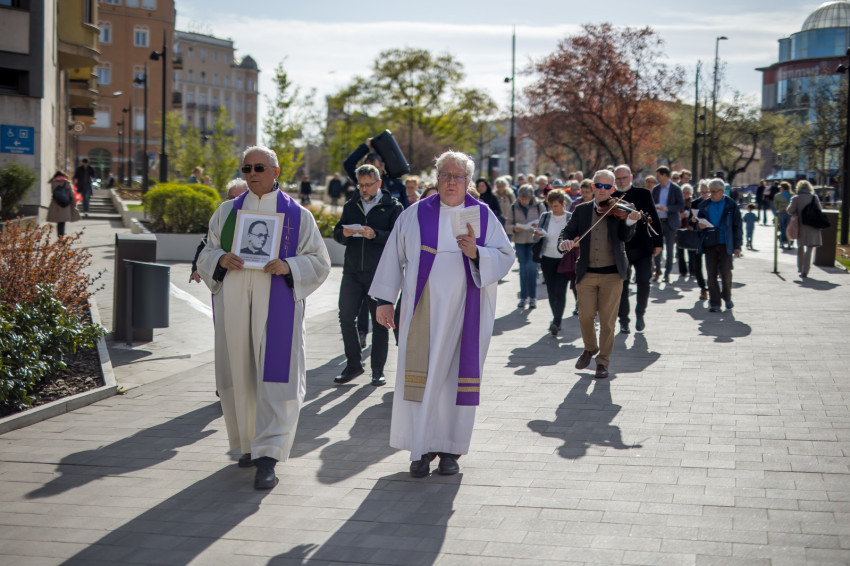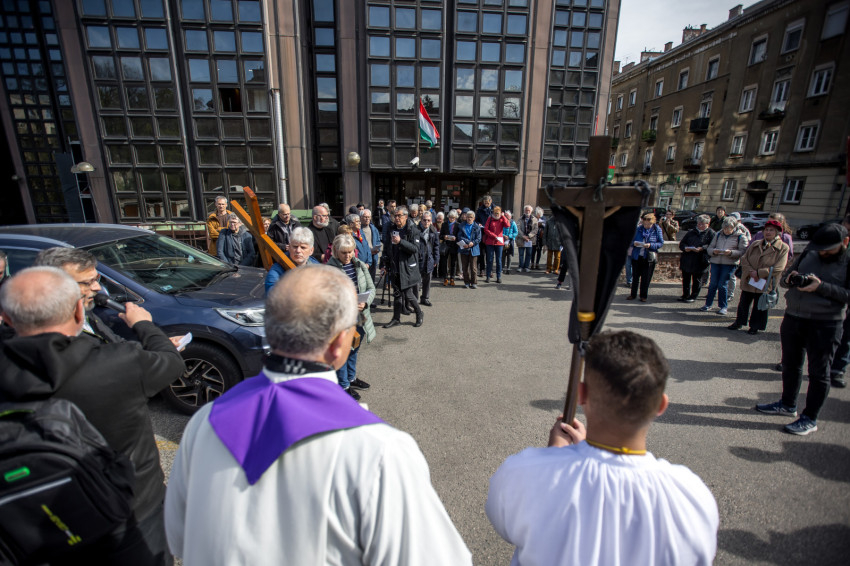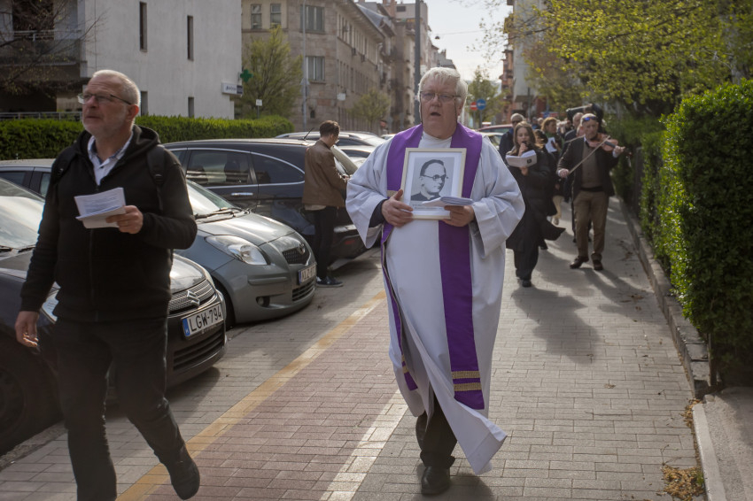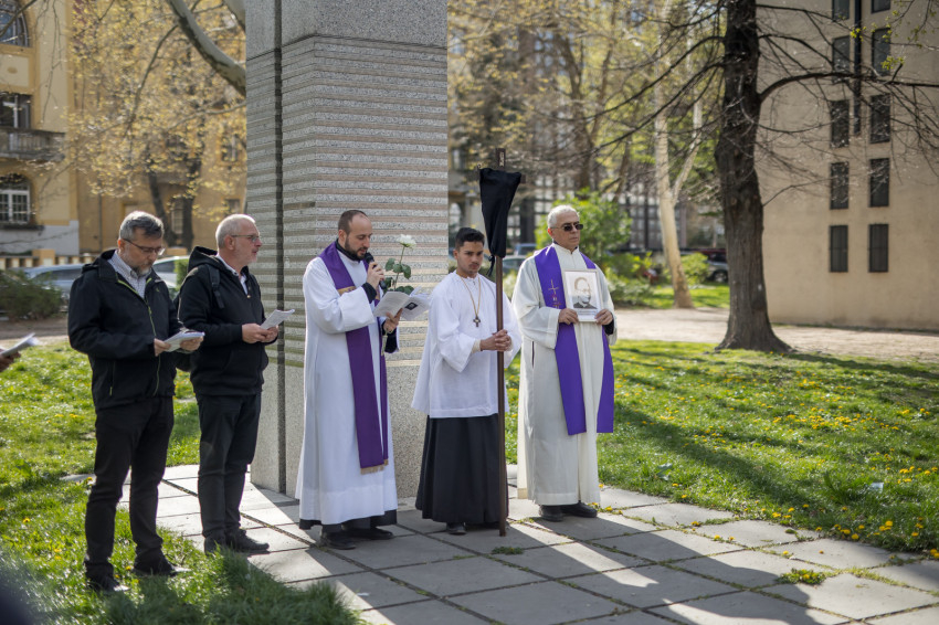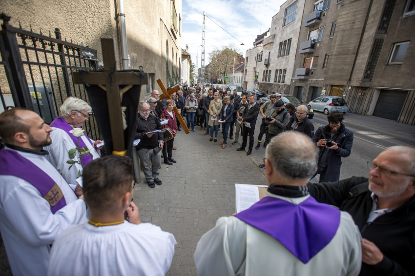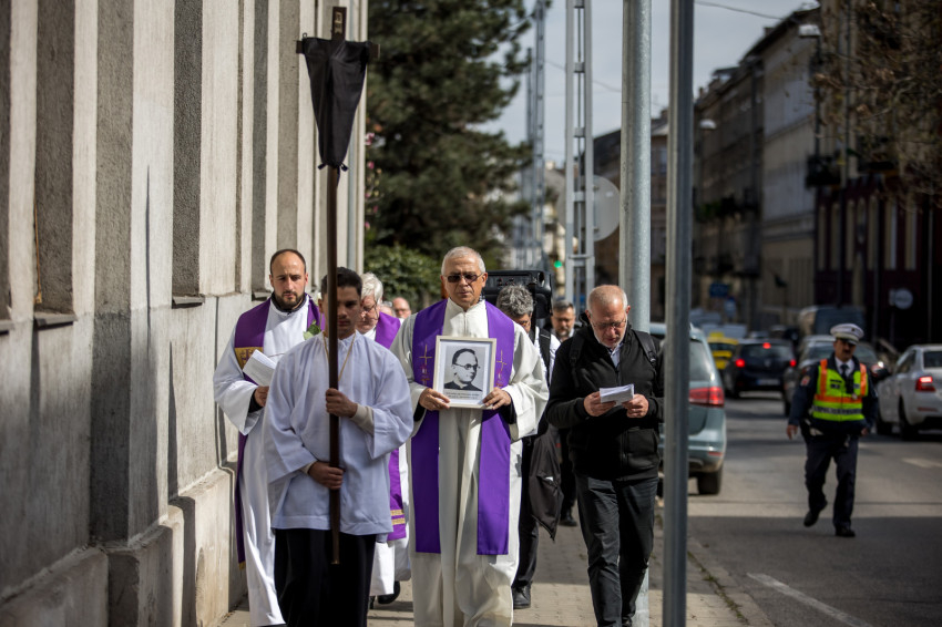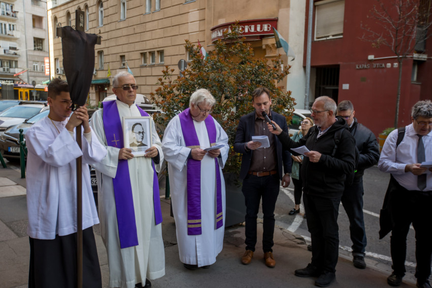 A péntek délután megjelent mintegy száz hívő 15 órakor, ragyogó napsütésben gyülekezett a Városmajori Jézus Szíve Plébánia előtt. Miközben a hívek végigjárták és énekelték a vértanúhalált halt pap útjának állomásait, Ervin Gábor írásai alapján imádkozták a keresztút stációit.