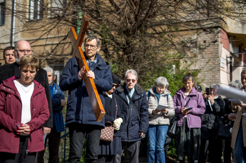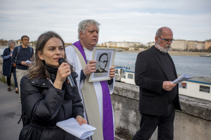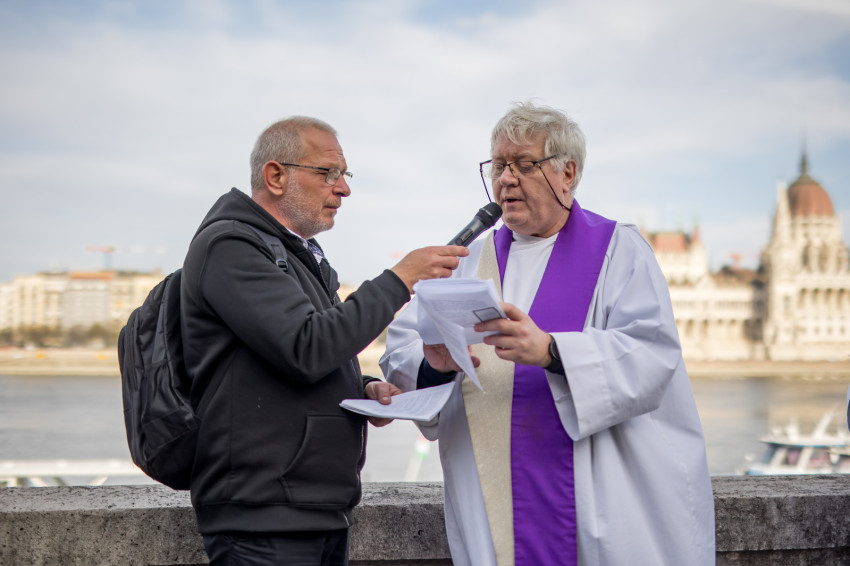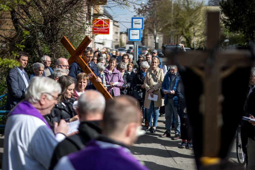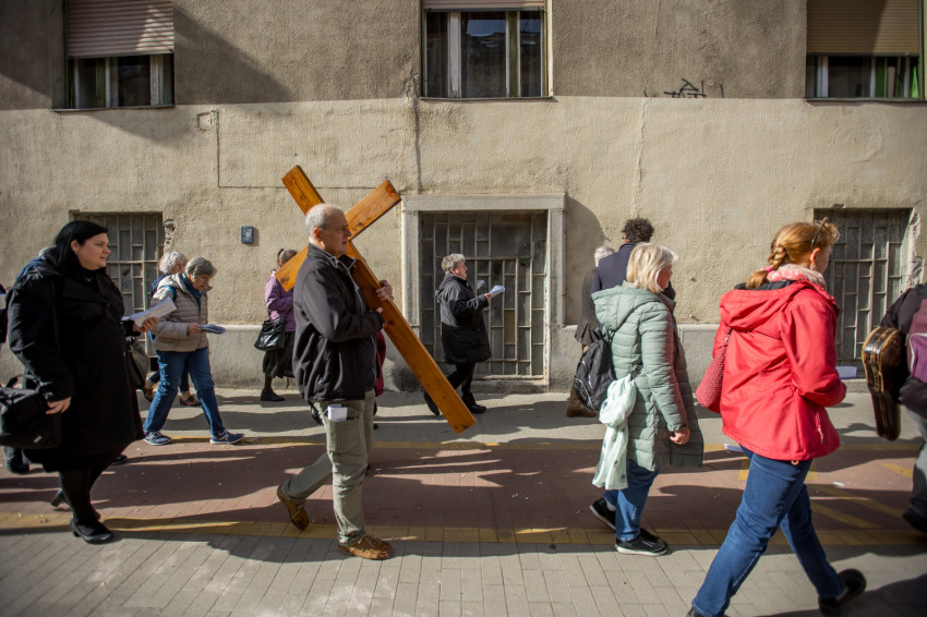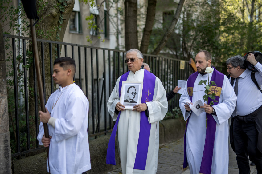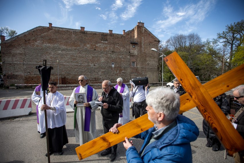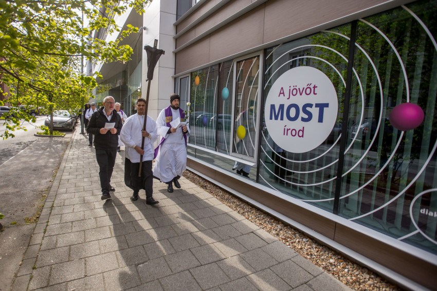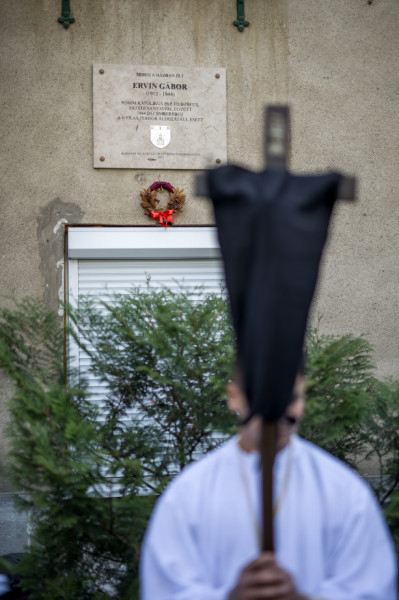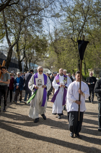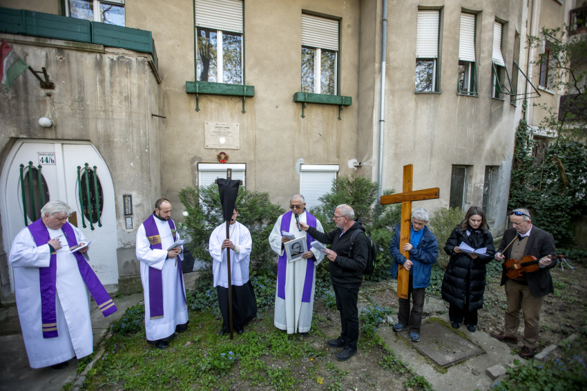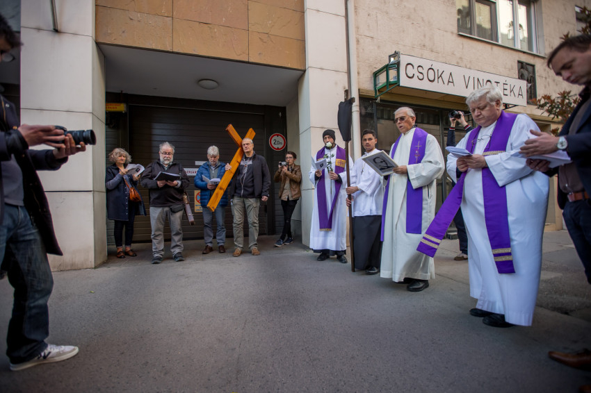 A péntek délután megjelent mintegy száz hívő 15 órakor, ragyogó napsütésben gyülekezett a Városmajori Jézus Szíve Plébánia előtt. Miközben a hívek végigjárták és énekelték a vértanúhalált halt pap útjának állomásait, Ervin Gábor írásai alapján imádkozták a keresztút stációit.