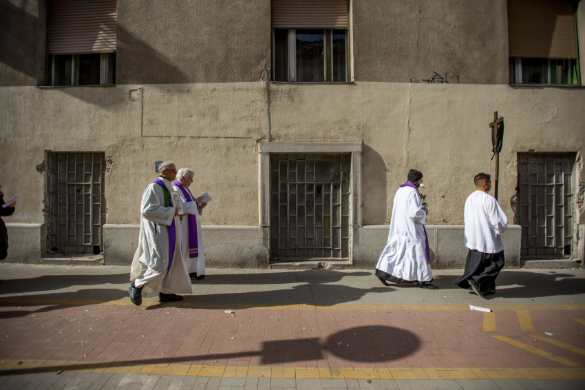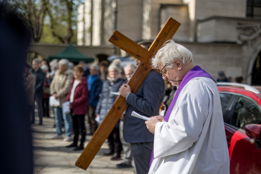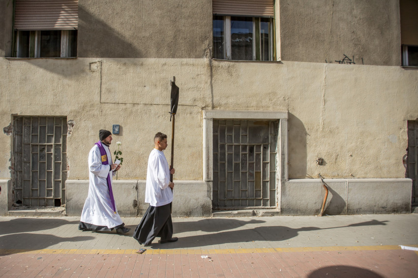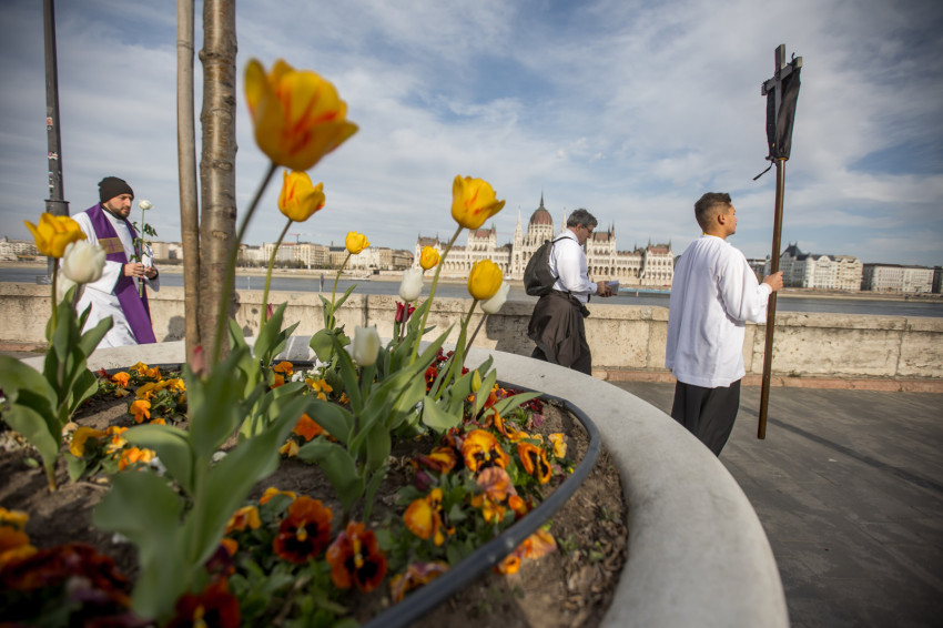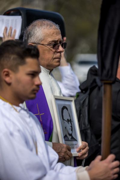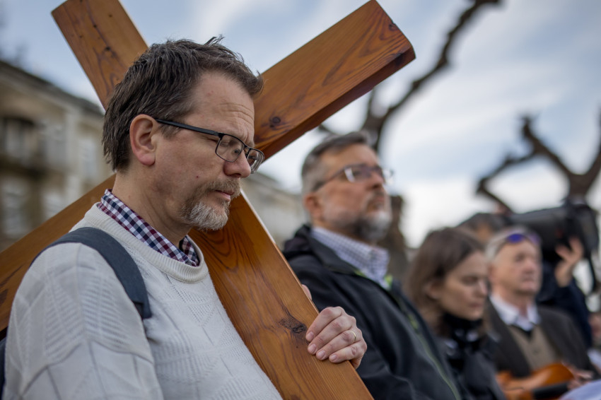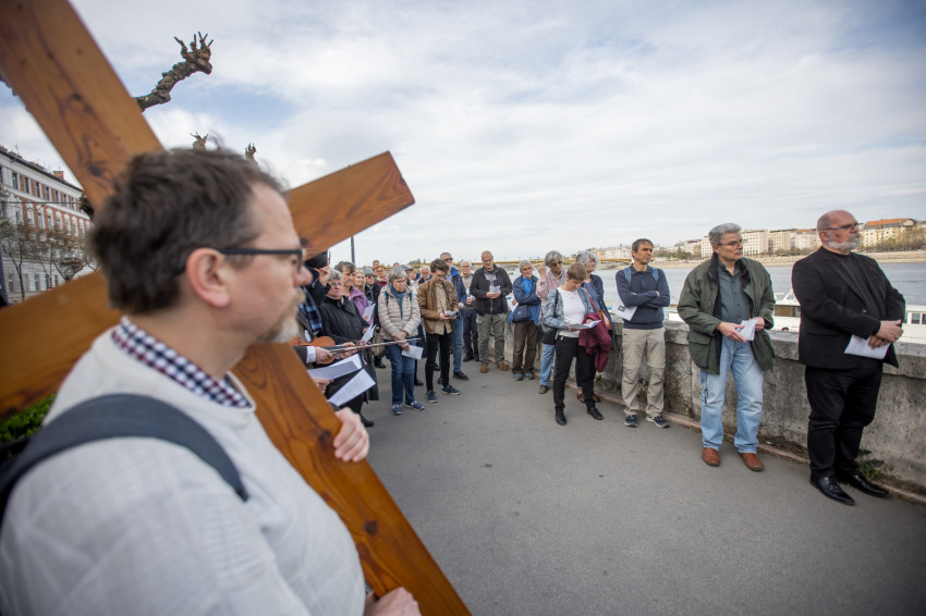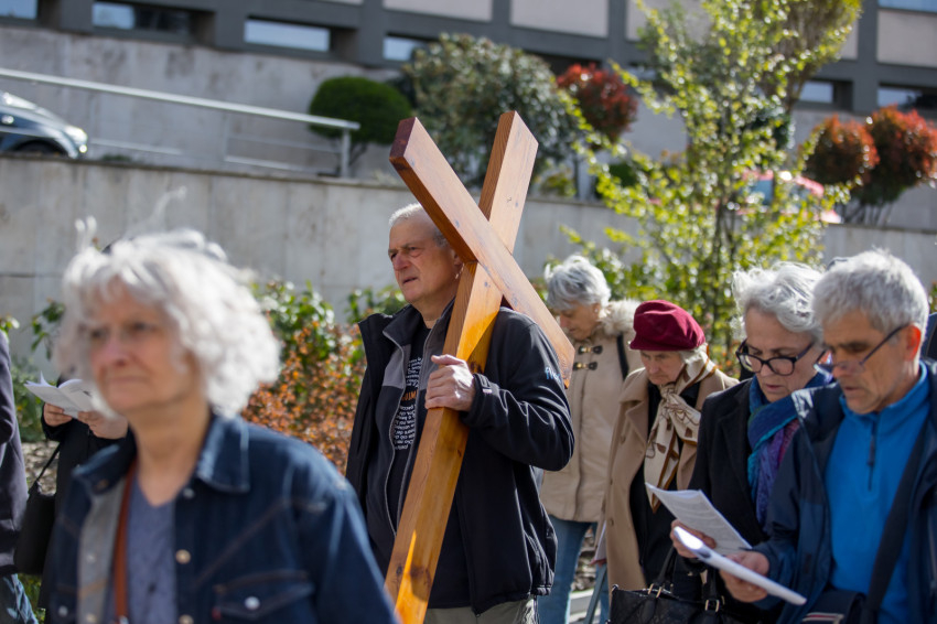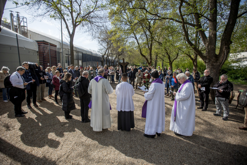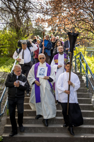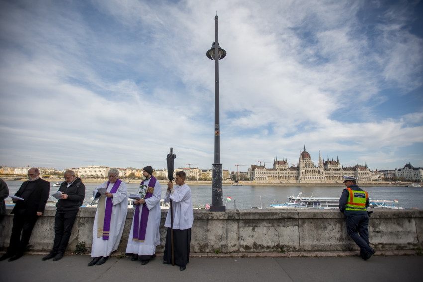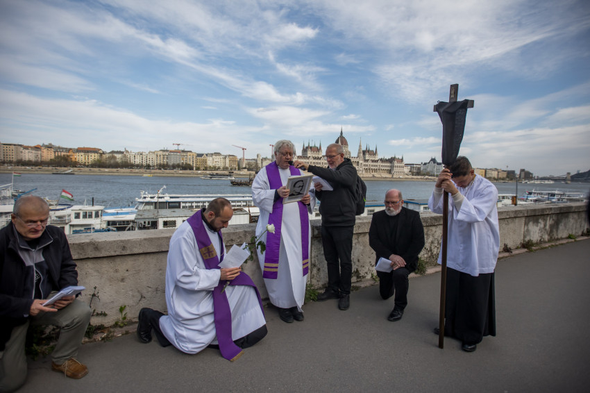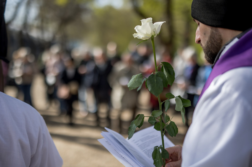 A péntek délután megjelent mintegy száz hívő 15 órakor, ragyogó napsütésben gyülekezett a Városmajori Jézus Szíve Plébánia előtt. Miközben a hívek végigjárták és énekelték a vértanúhalált halt pap útjának állomásait, Ervin Gábor írásai alapján imádkozták a keresztút stációit.